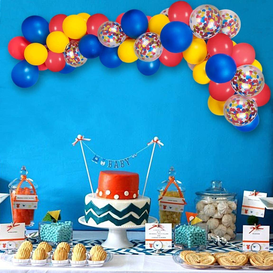 Especificaciones: Nplux Circo Globos Arco Kit 130pcs Azul Rojo Amarillo Confet