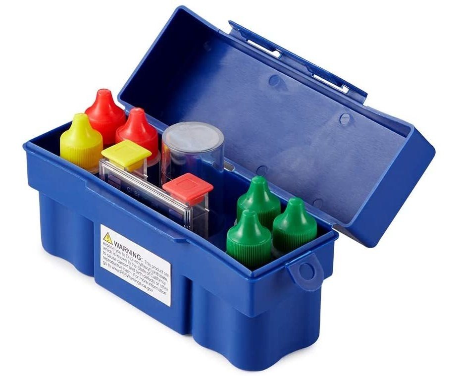 Proporciona una manera simple y fácil para medir el pH, cloro, bromo, alcalinidad y ácido demanda.; Incluye seis 1 (uno) fl oz reactivos; Cómodo, resistente, color azul caja de almacenamiento; Instrucciones, fácil de leer gráfico de colores, y una guía de prevención de problemas están incluidos; Peso: 0,5 kg 5 Vías Kit de prueba de piscina para mantener un entorno de natación seguro, de forma regular prueba los productos químicos en su piscina con este kit de prueba de piscina de 5 Vías preciso. Mediante el uso de componentes de colores, puede comprobar para cloro, bromo, pH, alcalinidad y ácido demanda. Este kit le proporciona con un código de color para comparar los resultados que desde su Colored reactivo testings. Tiras no son utilizados con este kit de pruebas. n n n Todos nuestros productos estan en inglés SKU 15092107324