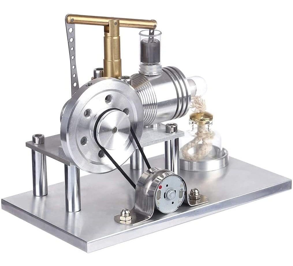 Material: Stainless steel Aluminum Alloy Reinforced Glass / Product Size: 16.59.513cm; The Stirling principle is used to produce a small model of education and entertainment, which requires only a small alcohol lamp to be powerful and turn quickly.; Novel and Unique design: the simple sense and the aesthetic double combination, can give a person a kind of creation idea. Each time it is activated, the heart will be quiet, infinite reverie, inspiration from a continuous spurt. As the flywheel rotates, people can enjoy the joy of creating power while being enlightened to the expandable space, and enter into the creation of an energy technology in an invisible way.; The product is suitable for people with a certain degree of patience and hands-on ability. It can exercise childrens hands-on and cerebral and spatial imagination ability, help them understand the principle of Stirling engine, more intuitively cultivate childrens interest in physics, and more easily increase knowledge.; Products are great for birthdays, Christmas, baby showers, Thanksgiving, back-to-school, valentines day, great gifts for boys, girls, friends, family, and teachers. For age: 8 .Color: As Shown