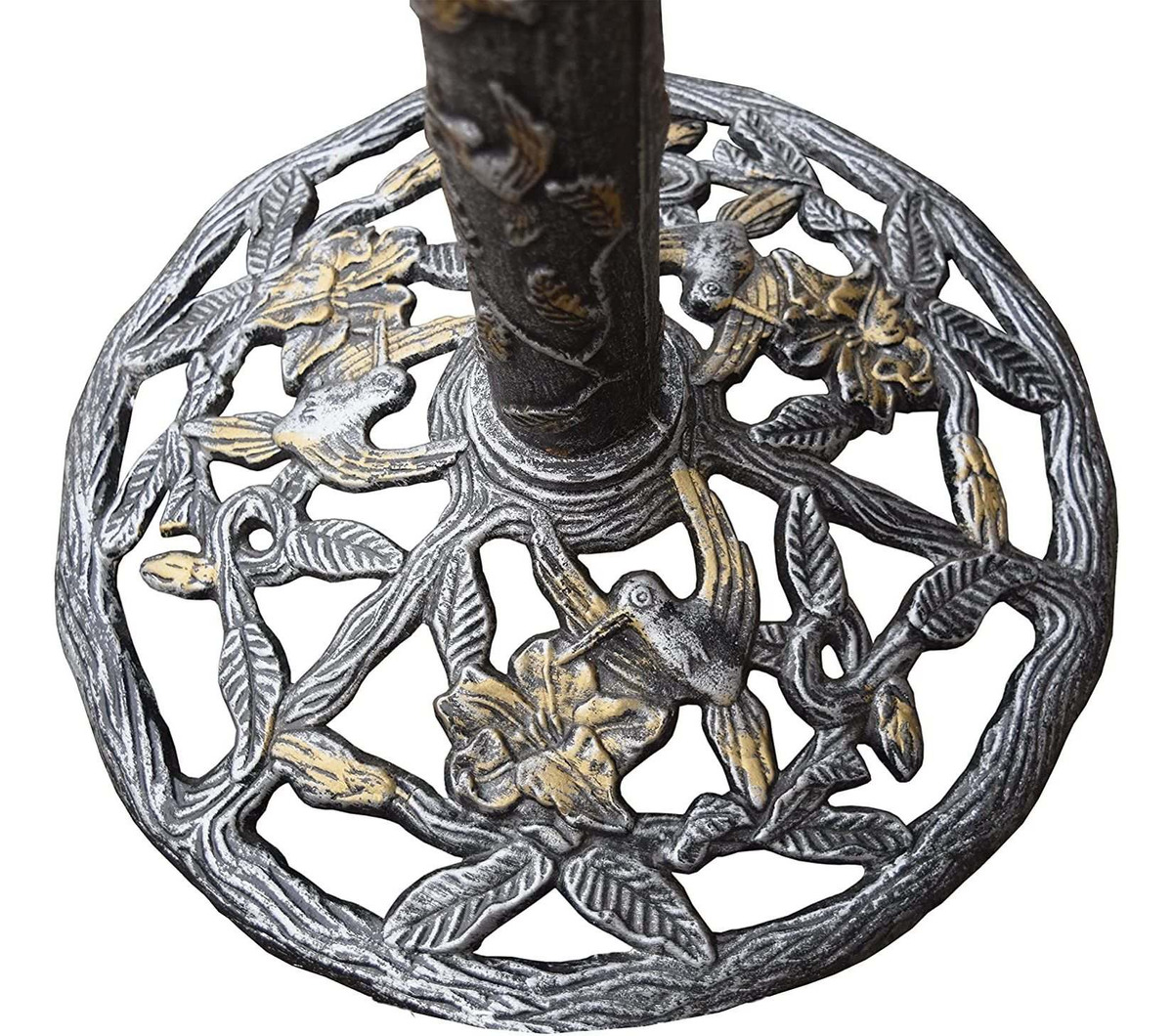 Hummingbird design birdbath is 17 in diameter x 32 high and weighs about 35 lbs; The base is cast iron, providing excellent stability; The bird bath basin is cast aluminum with an antique pewter finish; Hummingbirds and a flowering vine are cast into the design of the base, pedestal and basin plus cast metal bird figures are provided that mount to the edge of the basin; Easy to assemble with tools provided Hummingbird design birdbath is 17 in diameter x 32 high and weighs about 35 lbs. The base is cast iron, providing excellent stability. The bird bath basin is cast aluminum with an antique pewter finish. Hummingbirds and a flowering vine are cast into the design of the base, pedestal and basin. Includes cast metal bird figures that mount to the edge of the basin. Easy to assemble with tools provided. Functional and attractive in any yard or garden setting. Todos nuestros productos estan en inglés SKU 10032250969