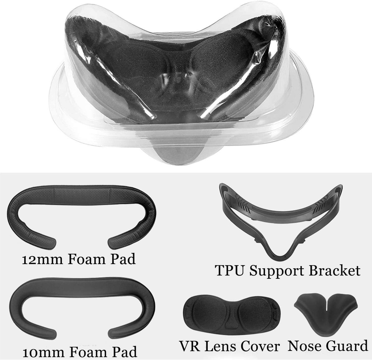 Diseño profesional: almohadilla facial para Oculus Quest 2 que está hecha de piel sintética, es suave y mantiene tus auriculares VR a prueba de sudor, haciendo que tus largas sesiones de realidad virtual sean mucho más cómodas.; Cómodo y ligero: se compone de dos partes, un soporte de plástico y una almohadilla de espuma de cuero. Los accesorios desmontables son más convenientes para usar Oculus Quest 2. El cojín suave puede adaptarse mejor a tu cara y evitar fugas de luz VR. Suave y resistente. Te hará sentir cómodo y relajado.; Fácil de usar: solo tienes que pegar la almohadilla de esponja en el soporte para usar. Son fáciles de limpiar, simplemente límpialos en seco o lávalos con agua para eliminar el sudor.; Tiene una mejor experiencia de realidad virtual: reemplazos (0.315 in) sin fugas de luz, te ponen más cerca de la pantalla para ofrecer un campo de visión más amplio y un ajuste más ajustado. Permite a los usuarios con gafas tener una mejor experiencia de realidad virtual, y el marco no se aprieta fácilmente.; El paquete incluye: 1 soporte para interfaz facial Oculus Quest 2, 2 espuma de piel sintética, 1 cubierta de lente. El Oculus Quest 2 que se muestra en la imagen no está incluido. Todos nuestros productos estan en inglés SKU 91221081183