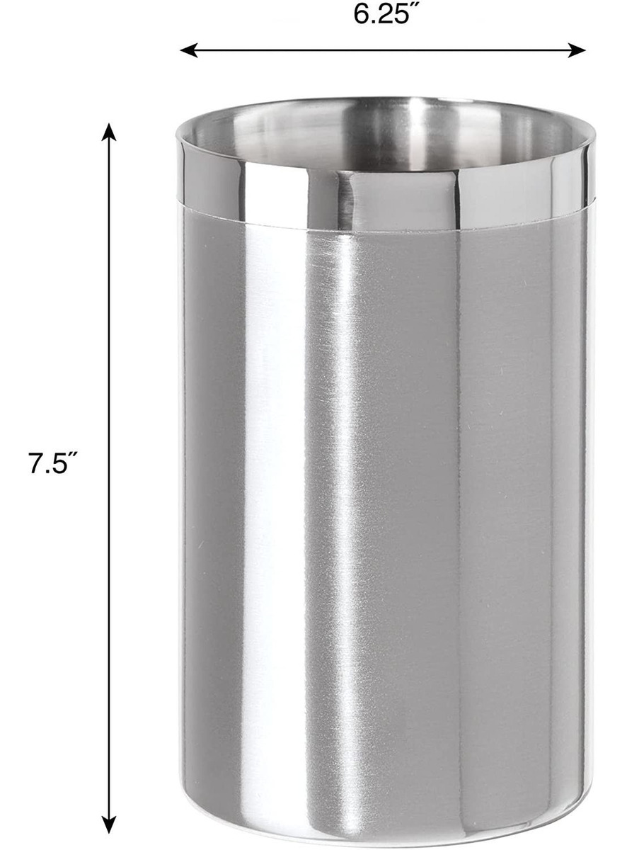 Una construcción de doble pared proporciona aislamiento para que tu vino se mantenga a su temperatura adecuada durante más tiempo; Acero inoxidable de calidad y artesanía fina; Versátil: el enfriador de vino de una sola botella de Oggi se puede utilizar en interiores y exteriores, en la mesa, en la cocina y en el bar.; Alta calidad: el acero inoxidable de calidad y la artesanía fina son evidentes en este cubo enfriador de vino duradero y bien hecho. El enfriador de vino de acero inoxidable de OGGI mantendrá el frío que deseas al beber tu vino frío y crujiente favorito. Hecho de acero inoxidable de alta calidad con aislamiento de doble pared que crea un núcleo térmico para mantener el contenido más frío durante más tiempo. El cuerpo de acero inoxidable cepillado funciona bien con cualquier decoración del hogar. Este enfriador de vino de doble pared de Oggi cuenta con un elegante cuerpo de acero inoxidable con un hermoso acabado satinado seguro que atraerá la vista. El enfriador de vino tiene una sola botella de tamaño estándar. Simplemente relájese su vino favorito en el refrigerador, luego sáquelo y colóquelo en el enfriador de vino para disfrutarlo en su mesa. Todos nuestros productos estan en inglés SKU 91221038923