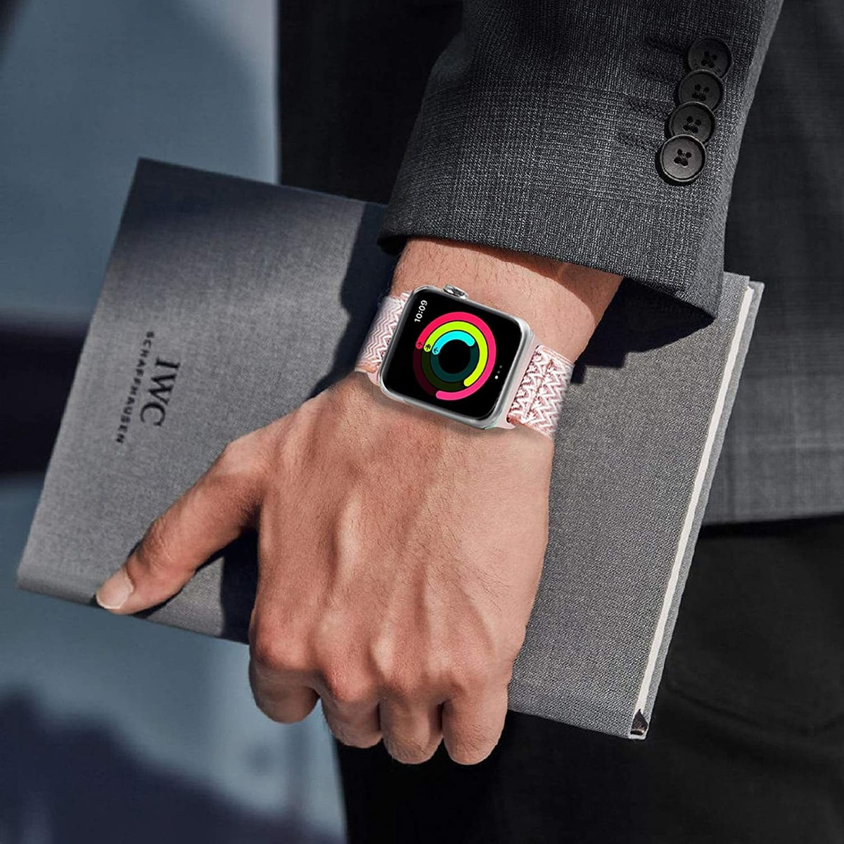 Materiales de calidad: hecha de nailon de alta calidad, transpirable y lavable. Sensación suave y cómoda para sentirse estupendo todo el día.; Ajustable y elástica: se trata de una correa elástica con un deslizador fino de acero inoxidable para que la puedas ajustar a la longitud que desees. Se adapta perfectamente a tu muñeca, sin restricciones. (Adecuada para muñecas de 4.5-9.5 pulgadas).; Diseño flexible: hecha de nailon elástico, fácil de colocar y quitar, agradable al tacto, diseño resistente y transpirable.; Ejercicio diario Funciona muy bien durante todo el día y para uso regular. Cuando haces ejercicio, esta correa elástica mantiene tu reloj ajustado a tu muñeca, para lograr mejores lecturas del entrenamiento. No irrita la piel cuando hace calor o sudas, se adapta cómodamente alrededor de tu muñeca.; Destacado Múltiples colores para elegir. Ajusta tu reloj a tu estado de ánimo y a la ropa que te pongas cada día. Puedes mezclar diferentes colores de correas para embellecer tu iWatch y resaltar tu gusto único. Todos nuestros productos estan en inglés SKU 91221081114