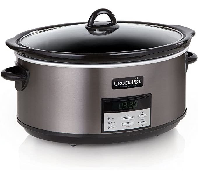 Con su mezcla de estilo y rendimiento superior, la olla de cocción lenta programable acero Crock-Pot Negro es la elección perfecta para sus de cocina importa su decoración. Su innovador acabado es más caliente y más suave que el acero inoxidable tradicional, y requiere un mantenimiento mínimo para mantener una apariencia lustrosa. Simplemente limpie con un paño seco para eliminar cualquier mancha en cuestión de segundos. Esta olla de cocción lenta también cuenta con una capacidad de 8 cuartos capaz de alimentar a más de 10 personas, un cronómetro digital de cuenta atrás que cocinan tiempos de hasta 20 horas, y una función de calentamiento automático que entra en acción cuando su cuenta regresiva está hecho. Cuando se hace la comida, la limpieza es muy sencillo gracias a la olla y la tapa de gres extraíble, apto para el lavavajillas. Necesita ideas para los platos para hacer Se incluye un libro de recetas clásicas Crock-Pot. Todos nuestros productos estan en inglés SKU 19052125467
