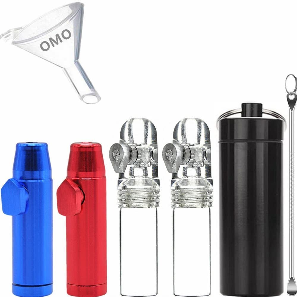Kit de rapé OMO: 2 balas de vidrio (blanco) y 2 balas de metal (azul rojo) y 1 botella de rapé de aleación de aluminio con cuchara (negro) y 1 mini embudo (6 unidades); Botella hermética a prueba de humedad, gran capacidad: las botellas de tabaco de este juego están equipadas con una cuchara, por lo que puedes sacar todo el rapé fácilmente. La botella de tabaco de aleación de aluminio negro tiene su propio anillo de sellado, que puede lograr un muy buen efecto impermeable y a prueba de humedad. Además, estas balas y botellas de rapé pueden contener aproximadamente 1 oz de rapé. Si utilizas 0.1 oz rapé por día, puede ayudarte a almacenar 10 días de rapé; Disfruta del rapé en cualquier momento y en cualquier lugar: el apagador de bala de metal es resistente a caídas, lo que es conveniente para usar en varias ocasiones como salir, viajar y trabajar. El vidrio de alta calidad está bellamente diseñado, adecuado para fiestas y espacios privados. Puedes utilizar un pequeño embudo para empacar el tabaco a la botella, puedes llevar más de 1 oz de rapé en cualquier lugar, puedes disfrutar del rapé en cualquier momento y en cualquier lugar; Hermoso paquete, conveniente para llevar, impresionante regalo para amigos: el paquete de balas de rapé es muy exquisita caja de regalo negra, que es adecuado para amigos como un regalo. También es muy cómodo de llevar por ti mismo; Garantía de calidad de 1 año: cualquier preocupación acerca de nuestros productos, póngase en contacto con nosotros directamente y le responderemos lo antes posible. Añádelo a la cesta ahora y únete a miles de fanáticos del rapé satisfechos en todo el mundo Te sentirás conveniente para disfrutar del tabaco mientras viajas o fueraVen a ver estas balas de tabaco y viales de vidrio!