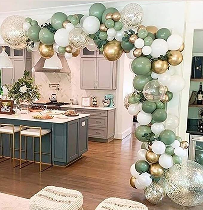 Especificaciones: Oopat Bricolaje Verde Salvia Y Globo Blanco Garland Arco Kit