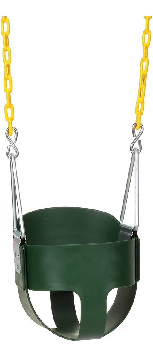 Totalmente montado, completamente cerrado y cuenta con un respaldo alto para el apoyo y la seguridad adicional; Materiales detalles: polietileno; cadenas del columpio son aproximadamente 66″ de largo; parte inferior 30″ de la cadena está recubierta en plastisol amarilla por suave, agarre libre de pellizco; Agregados a la mayoría oscilación barras de hasta 9′ altos y características 2/0 cadenas del columpio que son recubierto de zinc; medidas asiento del columpio 11.5″ de adelante hacia atrás y 10″ de lado a lado; medidas cubo de profundidad 11.5″ desde el punto más alto; asiento del columpio de calidad comercial se construye con alta calidad, plástico copolímero duradero y es sólo para uso residencial Todos nuestros productos estan en inglés SKU 15042023457