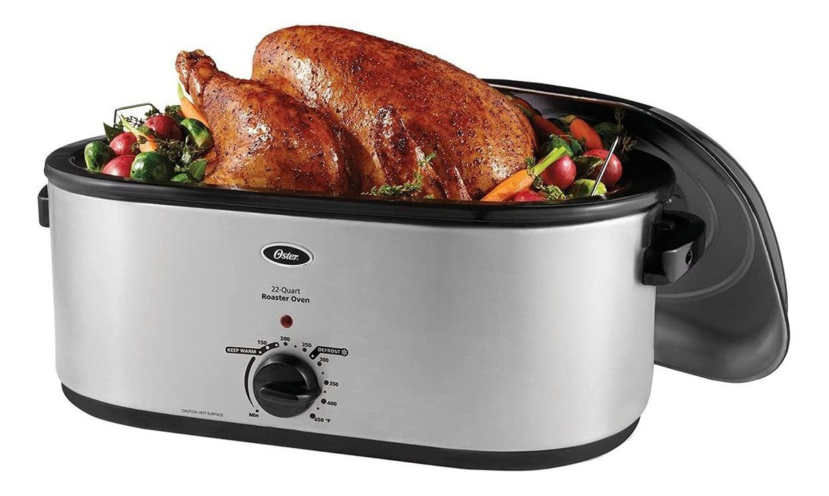 Horno eléctrico para asar pavos de hasta 26 libras; La tapa autoadherente recircula continuamente la humedad; Asador eléctrico versátil para hornear, cocción lenta, asados y servir; Dimensiones: 23.3 pulgadas de largo x 15.6 pulgadas de ancho x 11.8 pulgadas de alto; La sartén y el estante son extraíbles para una fácil limpieza Prepare pavo tierno, guisos de cocción lenta y mucho más con el horno de tostador Oster de 22 cuartos de galón. Equipado con una tapa autofuscante que recircula continuamente la humedad, este horno eléctrico elimina la necesidad de basting a mano para ayudarle a ahorrar tiempo y energía. La tapa de cúpula alta acomoda pavos de hasta 26 libras. Con su dial de temperatura ajustable, este versátil horno eléctrico le permite asar, cocinar lento o hornear una amplia variedad de platos. El práctico ajuste Keep Warm mantiene la comida a una temperatura ideal para servir. Una bandeja extraíble de acero esmaltado y un estante hacen que este asador eléctrico sea fácil de limpiar, y el exterior de acero inoxidable complementa atractivamente una variedad de decoraciones. El dial de control de temperatura variable establece el tostador a temperatura de cocción de 150F a 450F. Todos nuestros productos estan en inglés SKU 91221040999