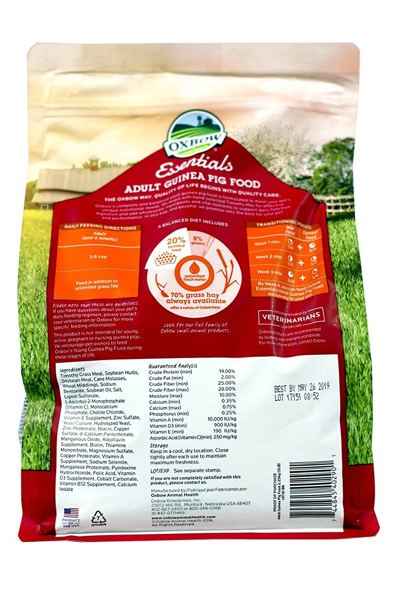 Especificaciones: Oxbow Esencial Para Adultos Guinea Pig (timoteo Based), 5 Li