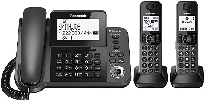Sincronizar hasta dos teléfonos inteligentes para hacer y recibir llamadas de teléfonos celulares con Link2Cell, unidad base inteligente. Los grandes, de alto contraste de 3.4 pulgadas LCD se ajusta hacia adelante y hacia atrás para obtener la máxima legibilidad. Los botones del teclado y la función se iluminan para facilitar la lectura en cualquier condición de luz .; Recibe alertas hablando de identificación de terminales Link2Cell cuando se reciben los textos; Bloquean hasta 250 números con un solo toque de bloqueo de llamadas en la unidad base y terminales, bloqueo de llamadas 1 toque, dedicada Bloquear llamadas botones de la unidad base y terminales permiten registrar hasta 250 números no deseados con 1 toque – incluso cuando el teléfono está de llamada o mientras se habla. También se puede registrar manualmente los números .; Incluye 3.000 Número guía telefónica, monitor de bebé y respaldo de energía de la batería, claro que escuchar las llamadas de los lugares ruidosos. Reducción de ruido suprime la interferencia de fondo al tiempo que mejoran los tonos de voz para una conversación más clara, más cómodo. Panasonic KX-TGF382M Link2Cell Bluetooth Teléfono inalámbrico con contestador automático con 2 Auricular Todos nuestros productos estan en inglés SKU 27061928765