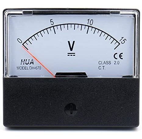 Intervalo de medición de corriente: DC 0-15V; Precisión: Clase 2.5; Altura total (no incluido tornillo): 47 mm / 1,85 ; Panel Tamaño: 65 x 57 x 10 mm / 2,6 x 2,2 x 0,4 (L W T); Contenido del paquete: 1 x analógico voltímetro, varias partes Instalación Mide gama actual de DC 0-15V con exactitud de la Clase 2.5.