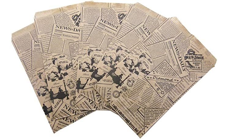 Estas bolsas de papel de periódico son grandes para cualquier persona que busca una estética de la vendimia. Ellos están seguros de mantener la atención de los clientes y amigos !; Venden en paquetes de 100, 200 y 300. Grande para un solo evento o compras al por mayor orientado al por menor-.; Bolsas vienen en una variedad de tamaños: (4 x 6 ), (5 x 7 ), (6 x 9 ), (8,5 x 11 ). Encuentra la talla apropiada para ti!; Una opción perfecta para empaquetar artesanías, mercancías o pequeños regalos para cualquier fiestas, bodas o escaparates .; Nuestras bolsas de papel planas están diseñadas para ser más resistentes que las bolsas de papel típicas lágrima, así como fácil de abrir y de relleno. Tamaño: 6 x 9 | Color: 100pcs