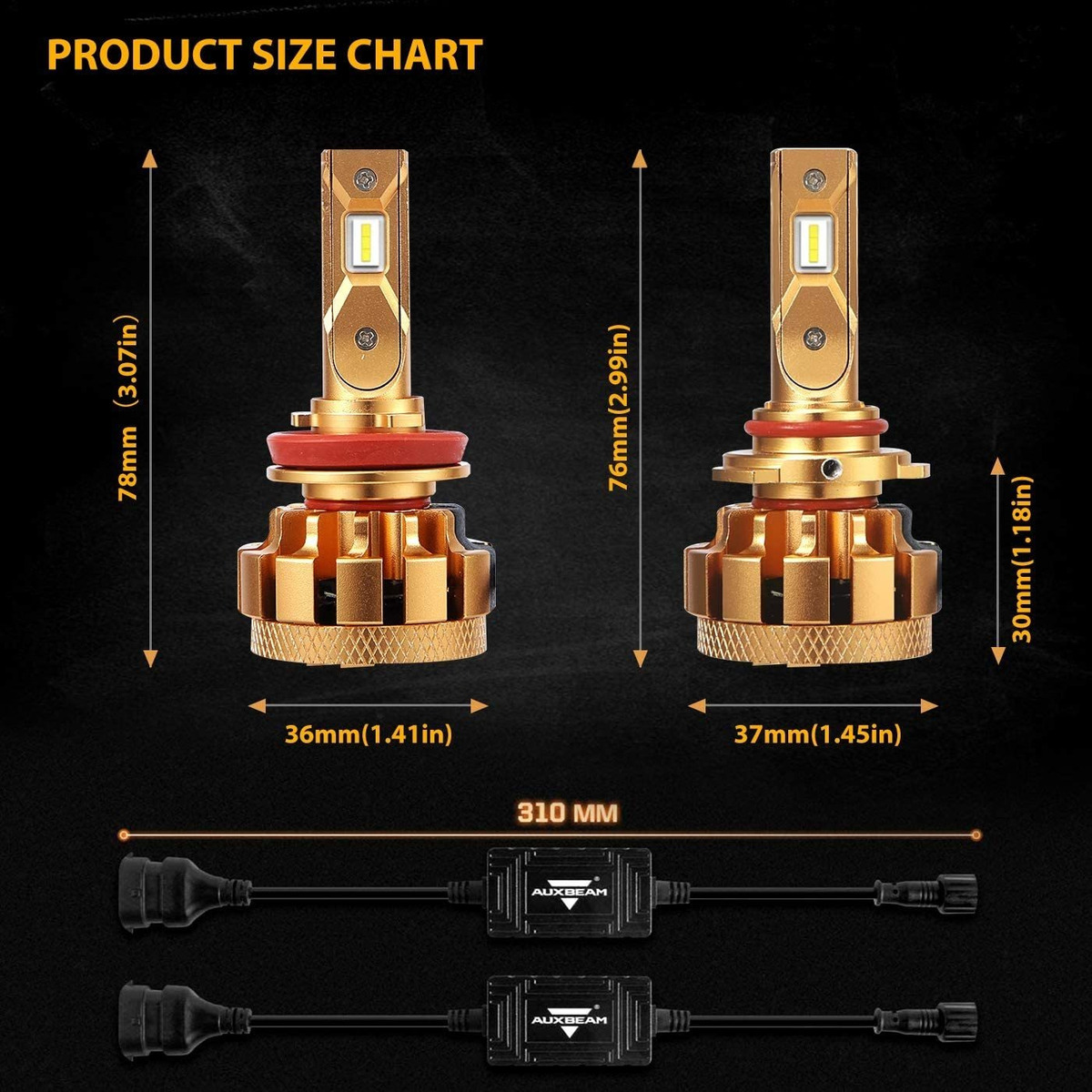 1.AUXBEAM 9005 H11 bombillas LED salta estafadores LED de grado automático personalizados de doble cara, Brillo ultra-alto