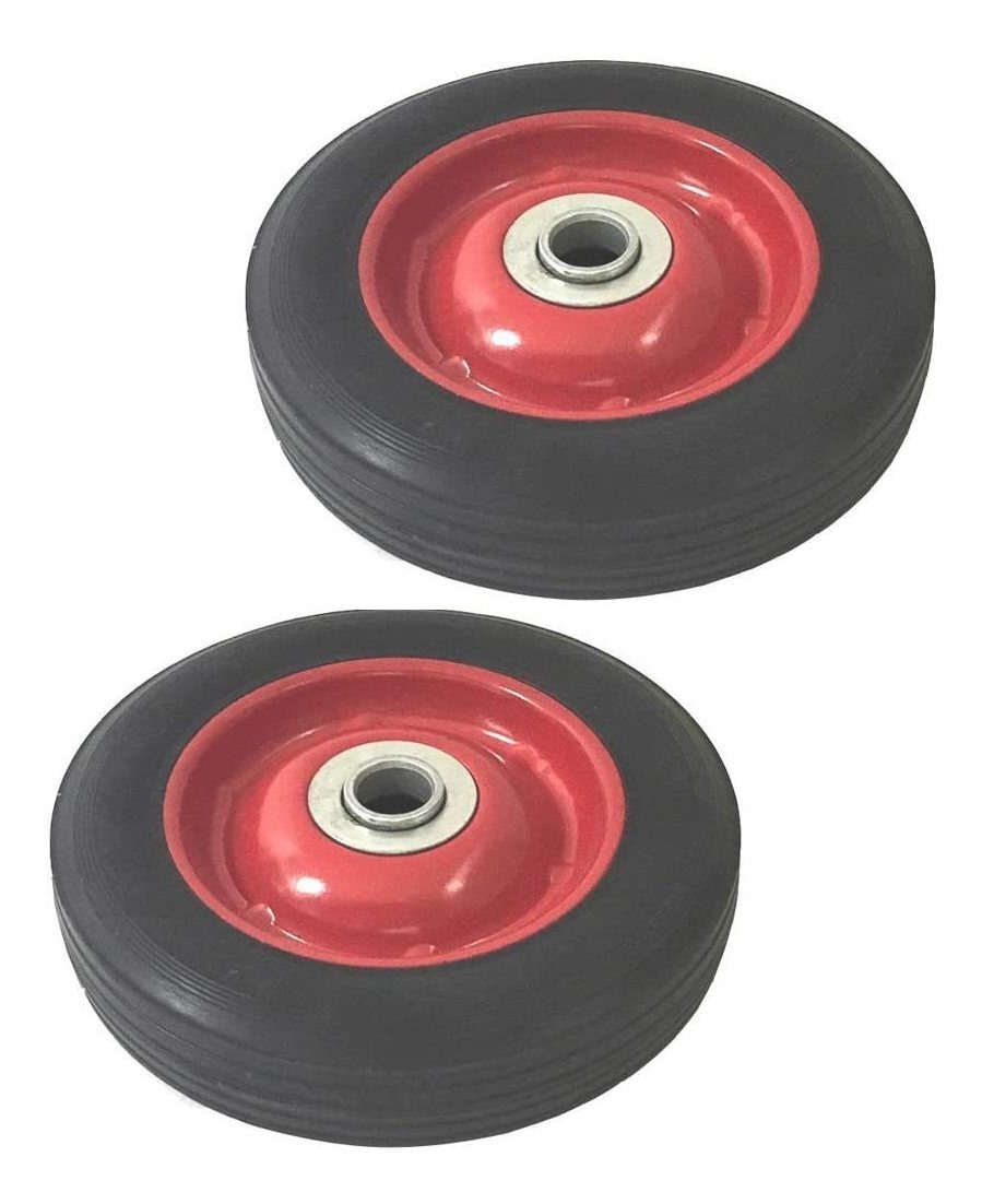 Cantidad: 2; Rueda de carretilla de goma sólida densa sin plano (espuma de polipropileno) en buje rojo; no deja marcas.; Neumático de 6 x 1.5 pulgadas; diámetro de neumático de 6.00 pulgadas. Ancho del neumático de 1.20 pulgadas; diámetro del agujero de rodamiento de 5/8 pulgadas, rodamientos dobles en el borde de acero; capacidad de carga de hasta 350 libras. No apto para uso en carretera.; El neumático no deja marcas y tiene el rebote y la sensación de un neumático sin que se aplane; Común como el neumático delantero de un cortacésped o mucho más para carretilla de mano/neumático multiusos 719936247501 Advertencia: no apto para uso en carretera. Sustituya siempre ambos neumáticos de aire por neumáticos no planos, nunca use un neumático no plano con un neumático de aire en el mismo camión de mano. Sin planos, si los neumáticos están fijados en la carga máxima durante mucho tiempo, dejarán un punto plano en los neumáticos, por favor, asegúrese de mover las ruedas de vez en cuando para que no se deformen en un punto plano en el neumático. Al lado de esa genial! Código upc: 719936247501 Todos nuestros productos estan en inglés SKU 4022200688