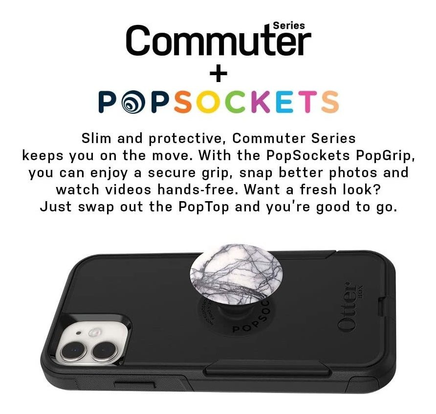 Funda de la serie Commuter compatible con iPhone 11, no viene con un protector de pantalla; La funda delgada y ligera de 2 piezas proporciona protección contra caídas, golpes y golpes (las cubiertas del puerto bloquean la entrada de polvo y desechos); PopSockets PopGrip (incluido) viene por separado en la caja, se puede colocar en cualquier lugar en la parte posterior de la funda, tú decides; PopGrips intercambiables te permiten cambiar tus PopTops, permitir la carga inalámbrica y tener las mismas ventajas que nuestros PopGrips originales, lo que permite un agarre plegable y soporte para teléfonos y tabletas; Incluye OtterBox garantía limitada de por vida (ver sitio web para más detalles) y 100% auténtico Color:Black / White Marble