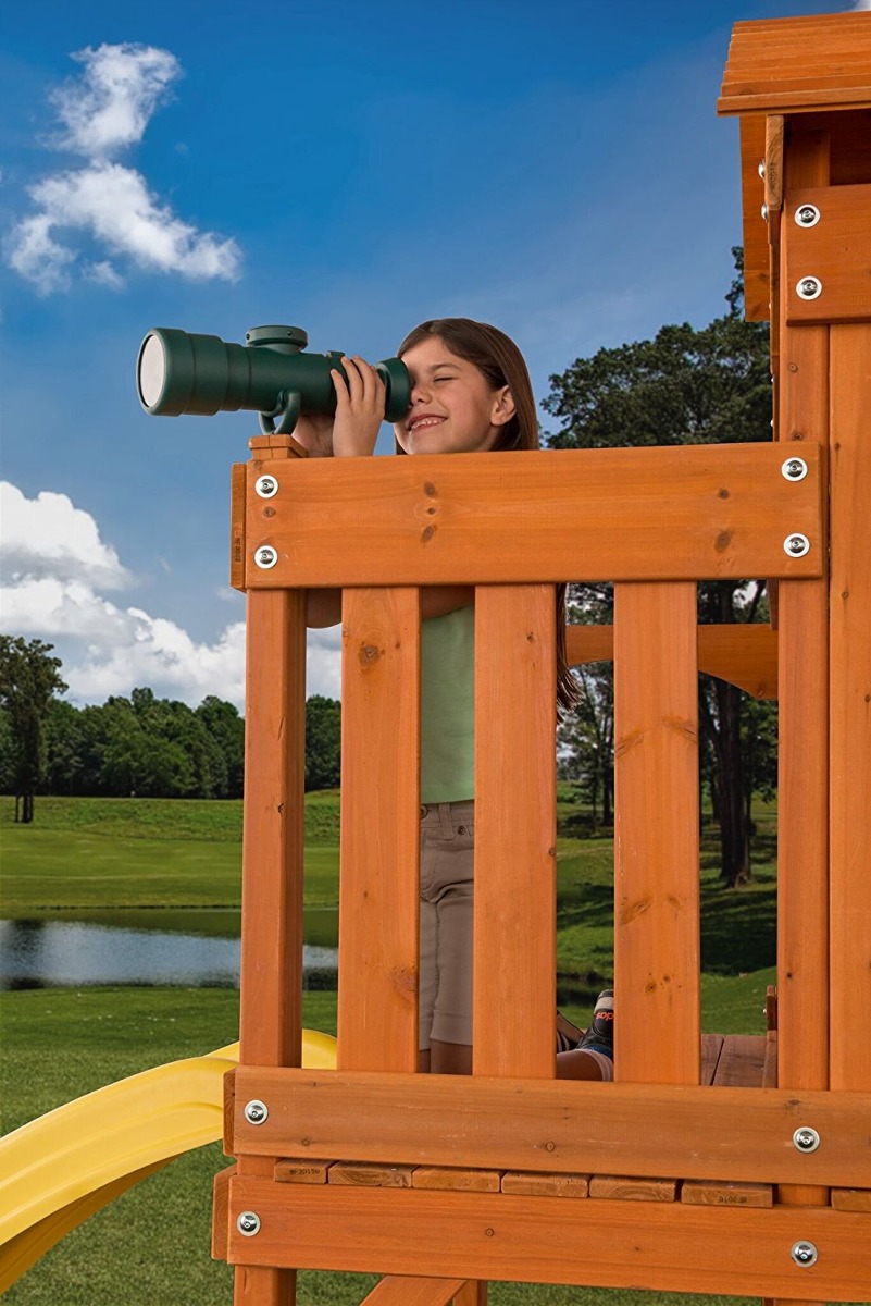 Se sujeta a una variedad de equipos de juego residencial para la compatibilidad con la mayoría de los conjuntos de juego patio trasero; La construcción de polietileno resistente y lentes de plástico añicos libres crean un accesorio de juego de columpios segura juego perfecto que cumple o excede los estándares ASTM; soporte de montaje desmontable y diseño simple, moldeado por inyección asegurar la longevidad de su accesorio columpio contra los elementos y el tiempo de juego vigoroso; Diseñado para su uso con equipos de juego residencial, destinada a niños de 3-10 años de edad; diseño simple super y hágalo usted mismo equipo de hardware para hacer una instalación minutos de duración que mantendrá su accesorio columpio conseguir a través del uso prolongado al aire libre Telescopio zona de juegos de accesorios de Creative Cedar diseños es además del explorador definitiva para cualquier conjunto residencial juego! , Diseño de gran tamaño accesible y Compass ilustraciones estimulan su pequeño navegador para explorar un mundo imaginativo de juego desde la seguridad de su sistema del juego del patio trasero! jugar al Juego de accesorios viene con telescopio de plástico, soporte de montaje, el hardware y las instrucciones de instalación. Adicional Filtrado Todos nuestros productos estan en inglés SKU 12111717283