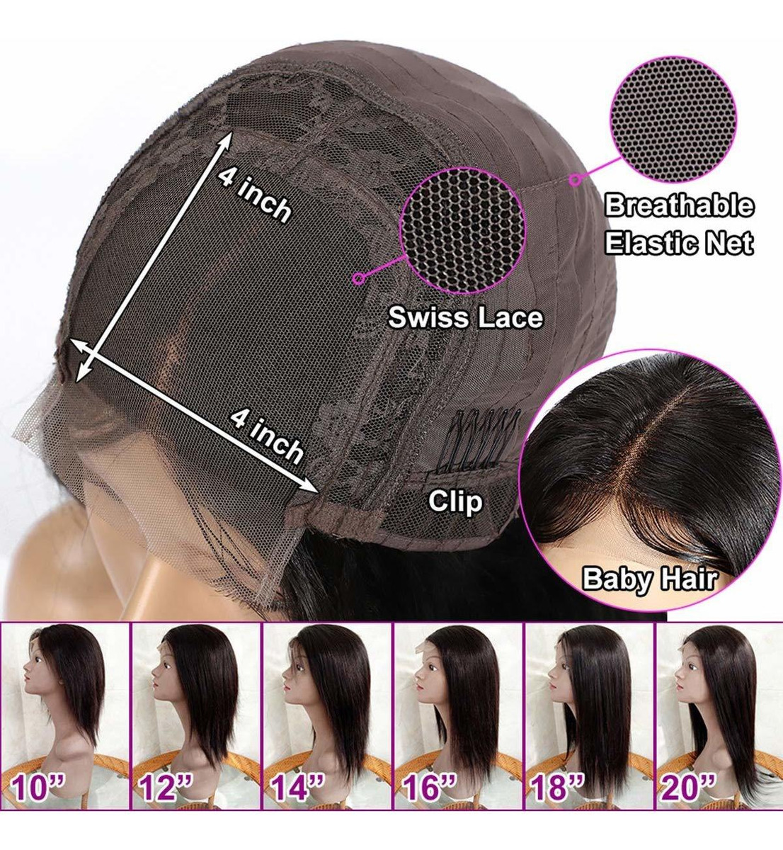 Specification: Peluca Frontal De Encaje 4×4 100% Pelo Brasileño Verdadero O