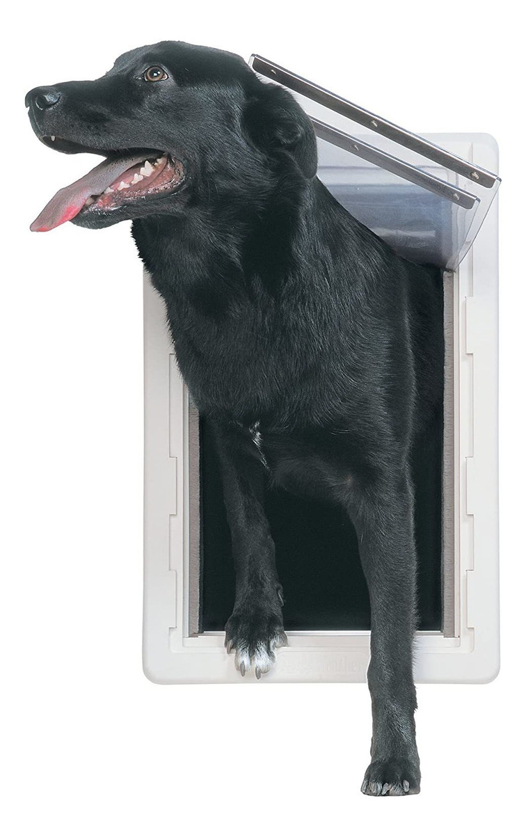 Energy efficient structural foam molded plastic; Adjustable frame telescopes -inch to 1 -inch thickness; Innovative Double Vinyl Flap design creates energy efficient air pocket for maximum insulation; Optional Wall Kit, sold separately; Flap Size 9 3/4-inch by 17-inch Whether you live and work in the great plains or north where the temperature plummets, or in the south- east or west where summer is endless, the cost of energy has sky rocketed. So, either heating or cooling the back yard with an old fashioned pet door just wont do anymore. In some cases the energy waste is like opening and closing the door itself 4 or 5 times a day. The all-weather doors air pocket between 2 soft flaps, making it a great energy efficient insulator is the answer. The all weather series in small, medium, extra large and super large are designed to give an air pocket of up to 3-inch between the 2 flaps in a door installation. And with the available wall tunnel kit, an air pocket of up to 9-inch. This is serious energy efficiency Todos nuestros productos estan en inglés SKU 10032225951