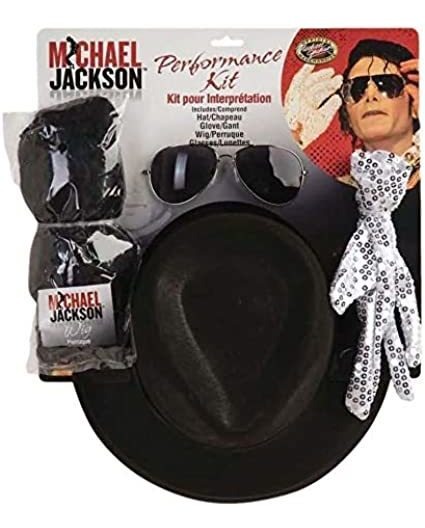 kit de accesorios conveniente tiene los conceptos básicos que te convertirá en el rey del pop; Incluye peluca, un sombrero y gafas; Y, por supuesto, también se incluye el guante de lentejuelas; Una talla para la mayoría de los adolescentes y mayores; Con licencia oficial de Michael Jackson accesorio del traje Y todo el mundo tiene que, respuesta ahora, sólo para decirle que una vez más, Quién es malo Prepárense para convertirse en el rey del pop con la ayuda de este kit de accesorios. Con sólo resbalar en el sombrero y la peluca y el uso de los tonos y el guante se sentirá listo para cantar su canción favorita de Michael Jackson. – Sombrero – Peluca – Gafas – solo guante Todos nuestros productos estan en inglés SKU 403217444