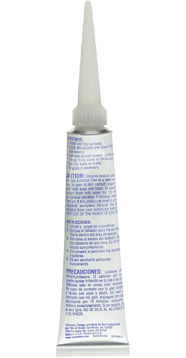 Forma una dura resistente al agua duradero sello claro,,,; Resistente a la intemperie, temperaturas extremas, vibraciones, golpes y la mayoría de los productos químicos de la tienda; Los flujos hacia las zonas ocultas y difíciles de alcanzar a fugas en los sellos; Rellena huecos en la superficie e irregularidades; Aplicaciones sugeridas: parabrisas, techos solares, ventanas, conjuntos de faros, cristales marinos, los respiraderos RV y windowstic, vinilo, caucho, acero, etc. Permatex Fluido de silicona de cristal del parabrisas y sellador fluye en zonas ocultas y difíciles de alcanzar, mientras que su efecto de mecha de silicona acción ‘busca la fuga.’ Se forma un duro resistente al agua duradero sello claro,,, que es resistente a la intemperie, temperaturas extremas, vibraciones, golpes y la mayoría de los productos químicos de la tienda. Carga de superficie huecos e irregularidades, con un rango de temperatura de -80 grados Fahrenheit a 450 grados Fahrenheit. Este sellador viene de una línea de confianza de los selladores Permatex para prácticamente cualquier aplicación de sellado de la automoción, de los parabrisas para techos de vinilo a las conexiones eléctricas. Estos selladores de uso general y trabajo bien conocido específicos son piedras angulares en la línea de Permatex. Todos nuestros productos estan en inglés SKU 70720078509