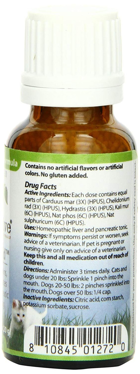 Especialmente formulado para mantener el funcionamiento saludable del hígado; Ayuda a promover la capacidad natural del hígado para purificar la sangre; Limpia el sistema mientras se mantiene la resistencia sistémica saludable contra la enfermedad; Formulado por un experto equipo de homeópatas y naturópatas; 100% natural sin conservantes artificiales PetAlive LiverAid combina remedios herbarios y homeopáticos en una fórmula única que es a la vez eficaz y seguro. Se puede utilizar de manera preventiva o como parte de un programa de tratamiento más amplio para los animales domésticos con el hígado, la vesícula biliar y los problemas pancreáticos. Utilice PetAlive Liver Dr. como un purificador de la sangre y limpiador de sistema; para mejorar y estimular el funcionamiento del hígado y prevenir la enfermedad del hígado; para eliminar las toxinas y fortalecer la resistencia sistémica contra la enfermedad y la infección; para ayudar con el flujo de bilis y promover la salud de la vesícula biliar; para mejorar la salud y el funcionamiento del páncreas especialmente en el caso de los animales diabéticos y como un tónico esencial para los animales con el hígado, la vesícula biliar y de las condiciones pancreáticas. Todos nuestros productos estan en inglés SKU 24041925184