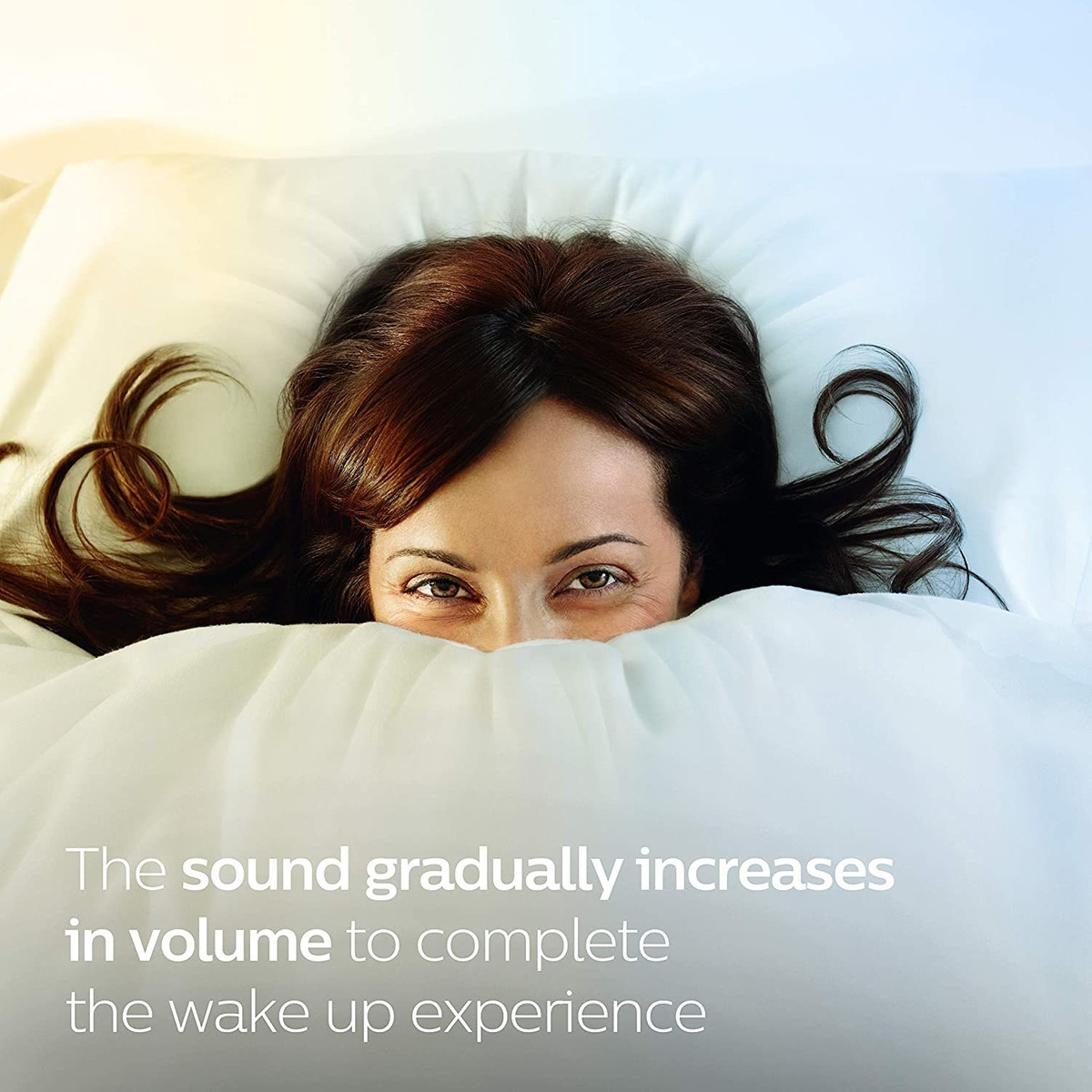 Para Despertar de forma natural, y Mejorar su Capacidad de Función en la mañana; Sólo las luces de despertar de Philips ESTÁN clinicamente probadas para Trabajar; Simulación del amanecer en amarillo brillante te despierta gradualmente con luz natural, Incluye ONU reloj despertador de presionar para Detener la alarme y Una Función de pitido para Asegurar Que Usted despierte en el Tiempo; Como utilizar Como una lámpara de mesita de noche con 10 AJUSTES de brillo. simulación de la salida del sol te despierta poco a poco la luz de noche con 10 ajustes de luz flujo de color de la salida del sol amarillo brillante asegura pitido suaves se levanta sobre la función de tiempo de pausa. Todos nuestros productos estan en inglés SKU 19052117257