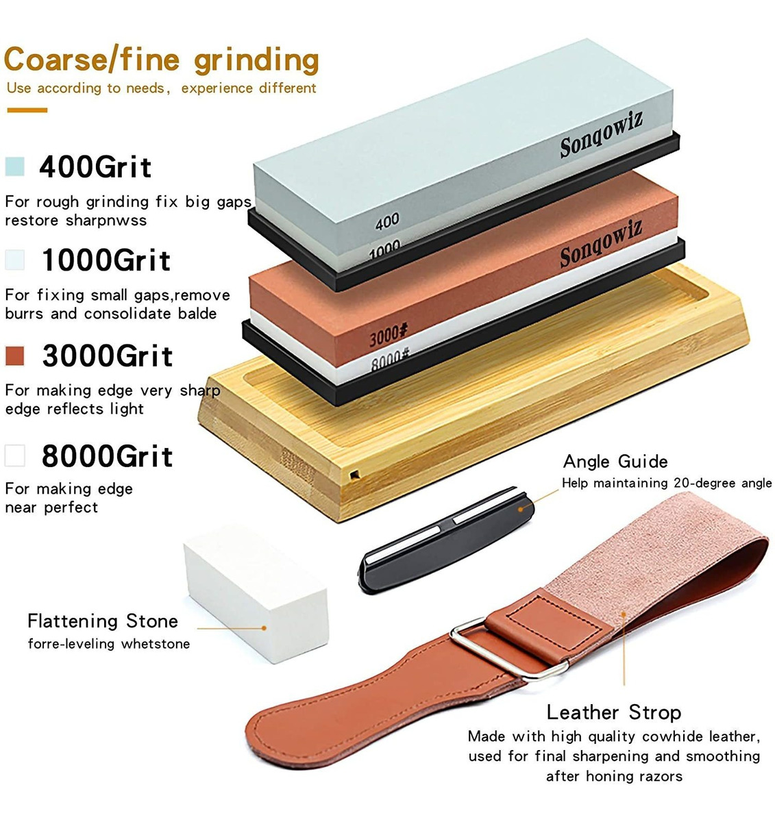 8000 Piedra de afilar: Para el acabado ultra-fino, y para afinar la cuchilla, pulir el borde y que sea suave y brillante.