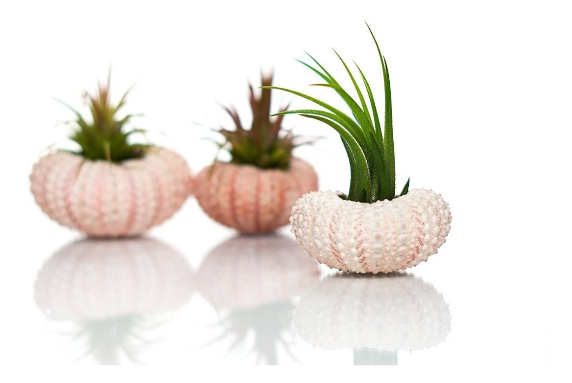 Planta De Aire Erizo Trio | 3 Rosa Erizos De Mar Y Tillandsi