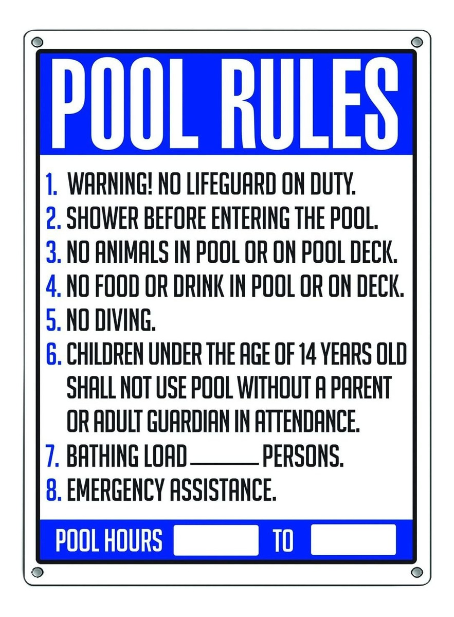 Perforada para colgar agujeros para fácil instalación; Impresa con tinta resistente Resist; Todas las condiciones meteorológicas para soportar las condiciones exteriores; 18 x 24; Elegir entre los muchos signos poolmaster tiene para ofrecer Estilo:Reglas de piscina comercial generales | Tamaño:18 x 24