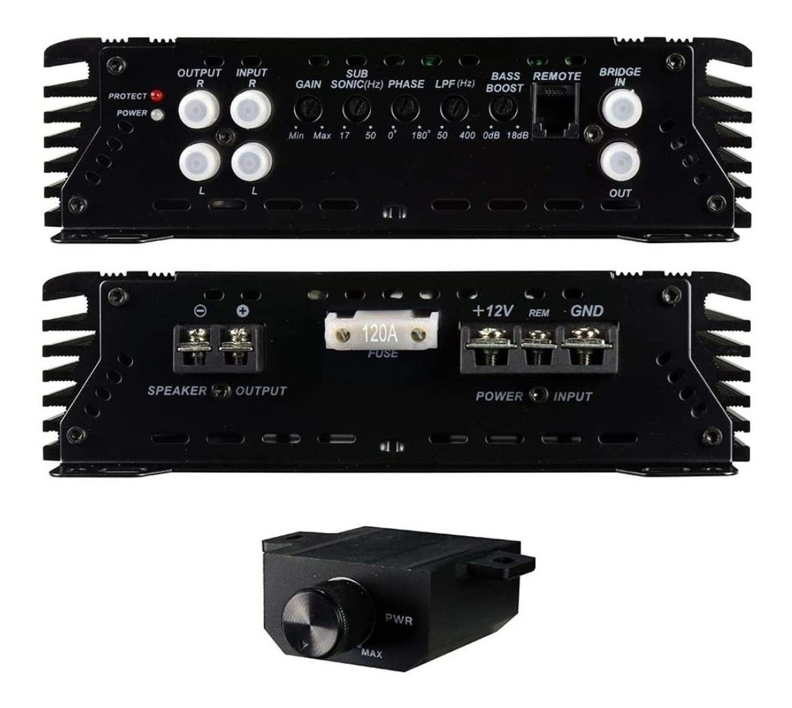 SALIDA 5000W MÁXIMO PARA audio de gran alcance .; 1100 vatios x 1 RMS 4 Ohms Mono. / 1700 vatios x 1 RMS 2 Ohms Mono. / 2500 vatios x 1 RMS 1 Ohm Mono .; CROSSOVERS y BASS BOOST: crossover variable y Bass Impulsar la operación flexible, que asegura .; 105dB SENSIBILIDAD: Detecta los tonos altos y bajos logrando una fiel reproducción de sonido .; REMOTO CONTROL DE GRAVES: montarlo bajo el tablero o en cualquier lugar al alcance de los ajustes rápidos Bass. 1100 vatios x 1 RMS 4 Ohms Mono.