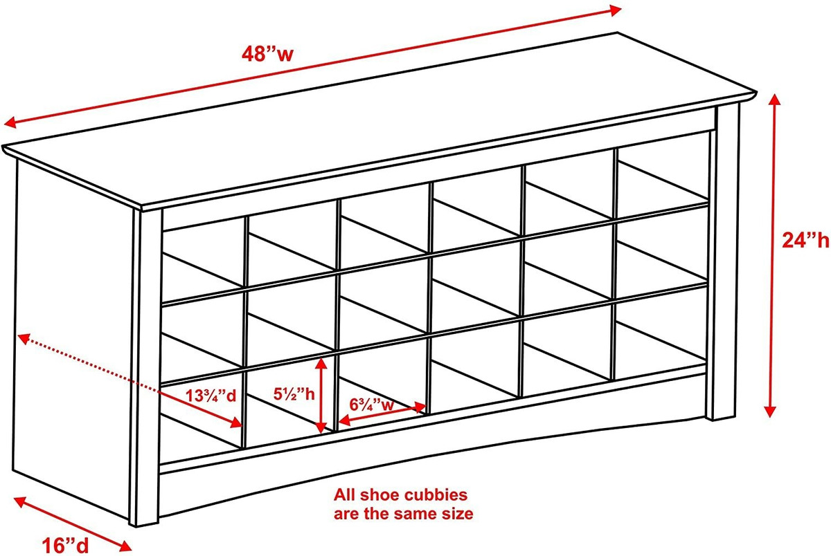 Especificaciones: Prepac De Zapatos De Almacenamiento Cubbie Bench, 24 X 48