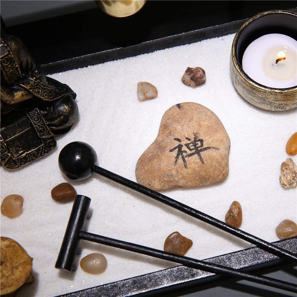 1. Los minijardines también son un gran proyecto de arte y manualidades para niños que quieren entrar en la jardinería. Puedes crear un minijardín para añadir accesorios en miniatura para hacer que el mini jardín sea tuyo.; 2. Colocación: puedes colocar este jardín zen en cualquier lugar que desees lograr la paz. Ya sea en tu casa o en el lugar de trabajo, simplemente adorna tu mesa con este hermoso jardín y estarás en tu camino para lograr paz y buenas vibraciones.; 3. Dimensiones aproximadas del paquete (en pulgadas): 7.3 pulgadas de ancho x 8.9 pulgadas de largo x 2.4 pulgadas de alto; material: madera y polirresina.; 4. Componentes: este increíble jardín viene con una bolsa de hermosas rocas, una bolsa de arena, portavelas (sin vela), una torre, un rastrillo, una gran roca zen, un martillo de reloj, un arco de campana, una estatua de Buda, así como una base.; 5. Regalo perfecto: este hermoso jardín Zen es el regalo perfecto para tus amigos, familiares y compañeros de trabajo, ya que te traerán paz. Color:Negro