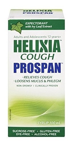 Excelente contra la tos asociada con moco espeso; Bien tolerado, sabor suave y agradable (miel / té helado verde similares); Producto natural (Hedera helix L.); Utilizado por más de 20 años en Alemania; Sacarosa, gluten, colorantes, alcohol y libre de drowsyness Helixia Prospan es la versión canadiense de Europa conocido jarabe Prospan. Sus extractos de hiedra de propiedad ayuda a aflojar el moco espeso y tenaz a toser a cabo con menos esfuerzo. Se dice que es también poseen propiedades anti-inflamatorias. posología recomendada durante 12 años en adelante es de 5 ml (1 cucharadita) 3 veces al día durante al menos una semana, pero debe buscar consejo médico sus síntomas duran más de 4 semanas. Agitar bien antes de usar. ingredientes no medicinales son agua purificada, sorbitol, sabor, goma de xantano, sorbato de potasio y ácido cítrico. Se incluye una taza de dosificación. En caso de sufrir de fiebre, tienen sangre o pus en la mucosa o dificultad respiratoria o si tiene alergia a la hiedra, el sorbitol o cualquier otro ingredientes antes mencionados, se abstengan de usar este producto. Estable durante hasta 3 meses después de la primera apertura. Por favor, lea el prospecto antes de usar. Todos nuestros productos son de Estados Unidos SKU 23111813980