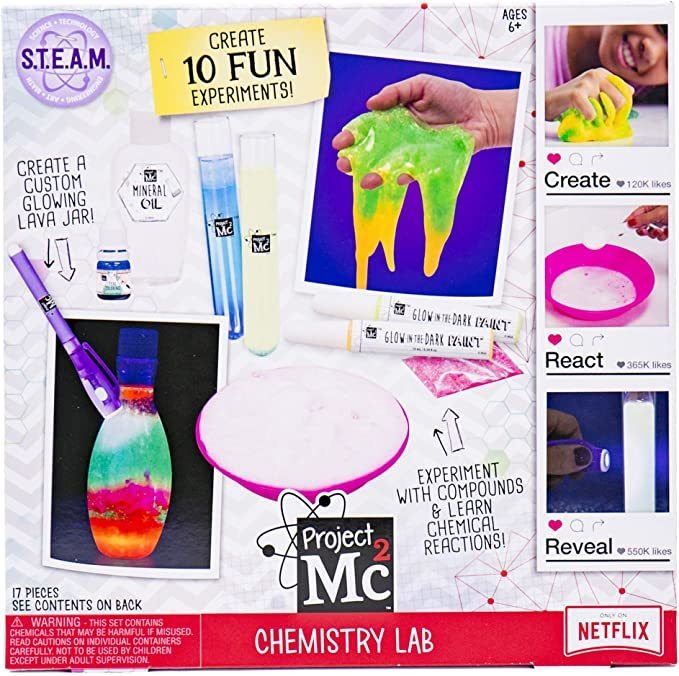 Ciencia en casa: Transforme su cocina en un laboratorio de química y explorar 10 experimentos divertidas !; S.T.E.A.M .: observar las reacciones químicas simples, experimentar con los compuestos y explorar principios científicos básicos a través de interactivos, manos a la obra; NOV8: sigue con el equipo NOV8 en Netflix mientras que sumergirse en su propio mundo de la química !; Lab incluye: tubos de ensayo, un recipiente de plástico, que brillan en la oscuridad de pintura, un lápiz óptico negro, sulfuro de cinc, Guar Gum, brillo, aceite mineral, bicarbonato de sodio, colorante color, ácido cítrico, cuchara de plástico, folleto; rango de edad: 6 años en adelante Apoderarse de su bata de laboratorio y las gafas … las cosas están a punto de causar problemas! Transformar su cocina en un laboratorio de química y llevar a cabo experimentos científicos sencillos como átomos de Adrienne con el laboratorio de química MC2 proyecto! Explora burbujeo diez, efervescente y experimentos que demuestran la ciencia que nos rodea brillante. Crear un frasco lava ardiente para observar la densidad, alivian el estrés y explorar las propiedades químicas de limo, y convertir una manzana en un volcán en erupción con los ingredientes básicos para el hogar. La ciencia es apasionante; vivir con el laboratorio de química MC2 proyecto! Recomendado para los químicos seis años en adelante. El kit incluye: 2 tubos de ensayo de plástico, un recipiente de plástico, un lápiz óptico negro, una cuchara de plástico, polvo de sulfuro de cinc, polvo de goma guar, brillo, aceite mineral, bicarbonato de sodio, de tinte de color, ácido cítrico, 2 tubos de resplandor-in- pintura la oscuridad y las instrucciones fáciles de seguimiento Todos nuestros productos estan en inglés SKU 403214007