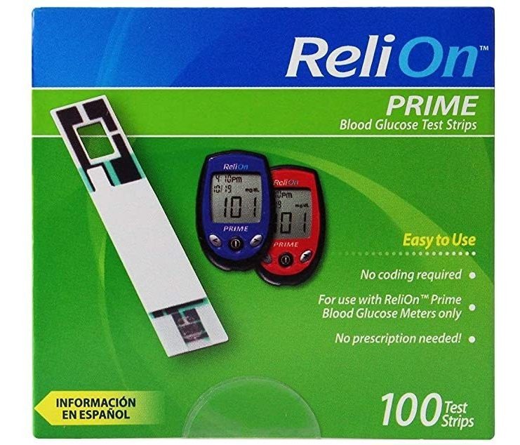 tiras de prueba de glucosa en sangre ReliOn 100 de recuento son fáciles de manejar de prueba en yema del dedo y / o palma de la mano; Sin necesidad de codificación; tamaño de la muestra probada exactitud; Diseñado para funcionar con tan sólo unos metros ReliOn primer glucosa; Comprobar sus niveles de glucosa en la sangre todos los días con facilidad Prueba de Glucosa en Sangre ReliOn primer tiras, 100 Conde, solo paquete Todos nuestros productos estan en inglés SKU 12062112542