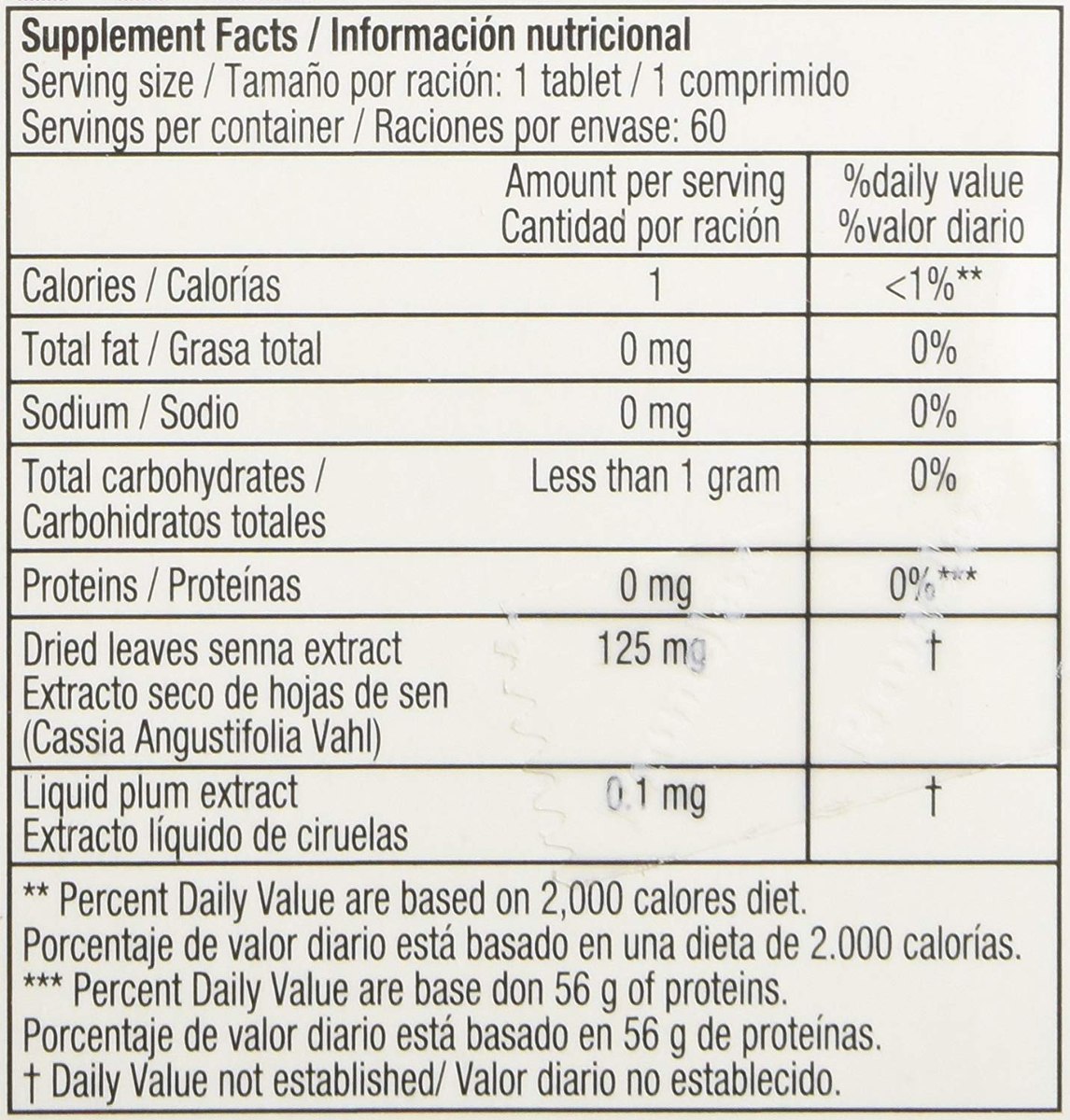 Especificaciones: Prunelax El Máximo Alivio Tabletas, 60 Ea. (paquete De 6, 36