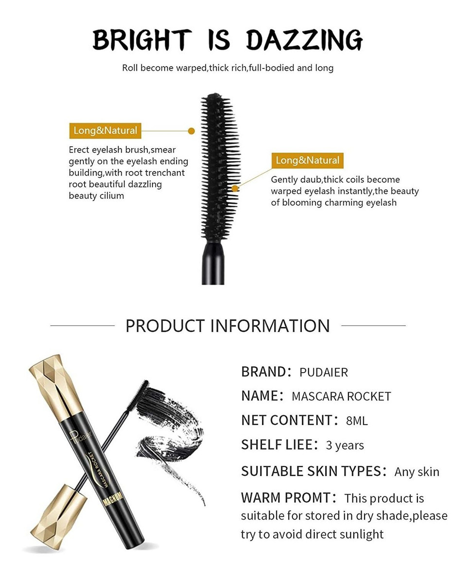 Especificaciones: Pudaier Mascara Impermeable 2 Pcs Fibra Densa Natural Y Larg