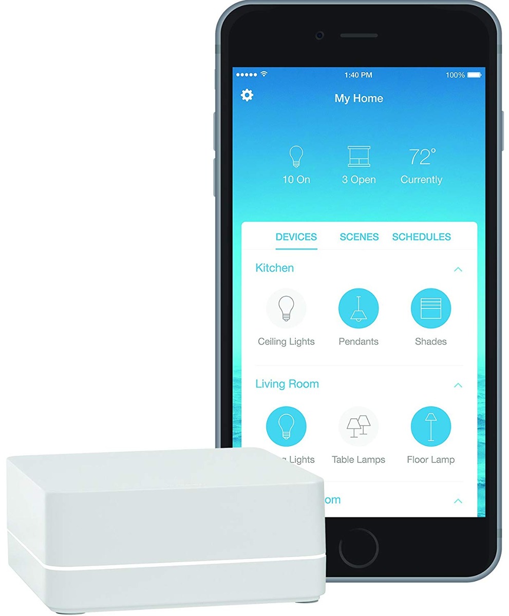 luces que controlan, sombras, y la temperatura de un dispositivo móvil nunca ha sido tan fácil y fiable. El puente inteligente Lutron permite una configuración, control y seguimiento de los reguladores de luz Caseta inalámbricos y Serena sombras por control remoto desde un teléfono inteligente, tableta, e incluso su Apple Seguir TM ponible. El puente de Lutron Smart también funciona con Apple HomeKit, Nido, seleccione Honeywell termostatos, controles remotos Harmony de Logitech, y mucho más. luces de horario para ajustar automáticamente en función de la hora del día, o crear sus escenas favoritas que ajustan múltiples luces y sombras con la pulsación de un botón. Habilitar geofencing para apagar automáticamente las luces de encendido / apagado cuando salga o enfoque casa, o para notificarle que dejó las luces encendidas. Todos los productos compatibles se venden por separado. Todos nuestros productos son de Estados Unidos SKU 30081838330