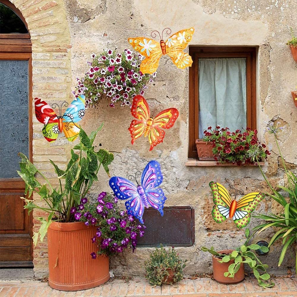 Decoración de pared de metal con mariposas, juego de 5 fauna, insectos, decoración temática de jardín