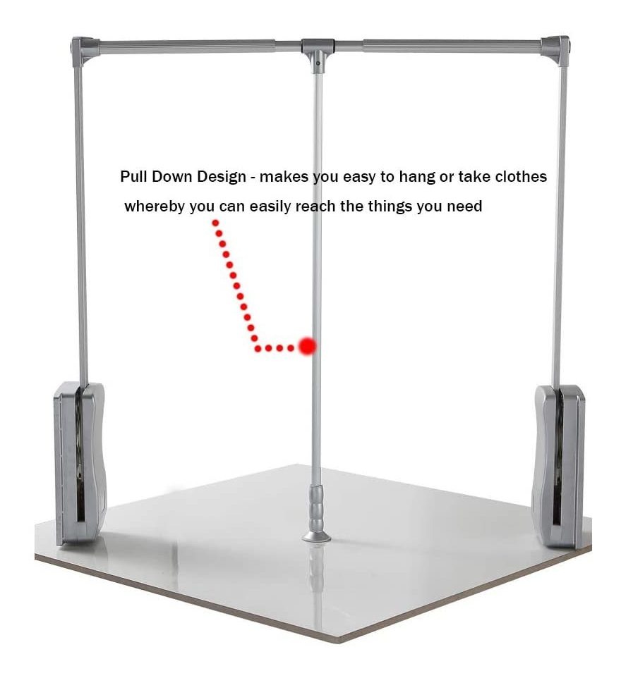 Ajustable Conveniente para armario anchura interior: aprox 890 a 1210mm (35 a 48 ). La anchura del tubo se puede ajustar debido a su diseño telescópico para que se ajuste bien armario .; Material de Premium – Nuestra tirar hacia abajo del armario Rods se hace principalmente del tubo de aluminio, robusto y duradero, con una fuerte capacidad de carga, la carga máxima a un máximo de 20 kg / 45lbs.this armario carril adopta el sistema de tampón de neumático, el brazo volverá al lugar alto suavemente .; Pull Down Diseño – Esta Ascensor Armario carril adopta el sistema de amortiguación neumática, te hace fácil de colgar o llevar ropa mediante el cual se puede llegar fácilmente a las cosas que necesita, y colgar la ropa o recoger convenientemente, además, tire del brazo suavemente para hacer que el carril en la posición horizontal, la ropa se puede colgar en la parte superior del armario, dejando espacio en la parte inferior para bastidores o estantes; Ahorro de espacio – Hacer un uso completo del lugar alto que no podemos llegar a, ahorrar espacio en su armario. nuestra percha de elevación armario da la posibilidad de montar los rieles más alta que se puede alcanzar debido a la atracción hacia abajo sistema hidráulico .; Buen funcionamiento – Utilice nuestro armario ascensor organizador de la ropa que se pueden colgar en la parte superior del armario, dejando espacio en la parte inferior de bastidores o estantes con fácil de poner y sacar sin escalones u otras ayudas. Todos nuestros productos estan en inglés SKU 6102028610