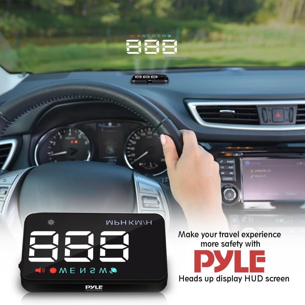 Pyle universal 3.5’ ’coche HUD Head-Up Display Multi-color de la pantalla del proyector parabrisas de velocidad del vehículo y GPS de navegación brújula, Plug & Play (PHUD12) El PYLE PHUD12 Heads Up Display HUD de pantalla está diseñado con el conductor en mente para el último en proporcionar una experiencia de conducción segura, con una proyección importante información en el parabrisas en el nivel de los ojos del conductor, lo que le permite leer la información al instante y claramente sin tener los ojos de la carretera en frente.