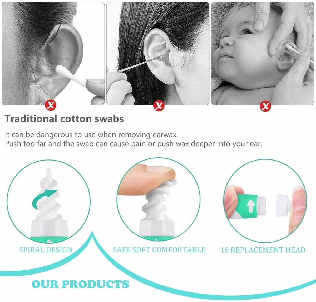 Removedor de cera de oído Seguro y suave: Estas puntas de limpiador de ears ESTÁN Hechas de silicona. Diseñado con elástico de material de 1,0 en (1 espiral), lo Suficientemente largo para ELIMINAR la cera de los ears, Más seguro y Más Eficiente Que Otros hisopos. Nuestro limpiador inteligente no es solo una Herramienta, Sino Una Manera Más Saludable de Limpiar tus ears Para Tu Familia .; Practico y Esencial Para La Familia: Elegir El juego de limpiador de cera en espiral es portátil para tus viajes y para ir de un Negocios Como una limpieza privada de Pequeños Objetos, práctico para resolver tu Problema. Paquete Profesional de regalo ideales para o amigos Familia. Este tipo de removedores de cera en espiral es un regalo Esencial Para La Familia. Te Ayuda a Proteger Tu Vida Saludable de la Familia, mantenerte limpio y cómodo, no tóxico, inofensivo, suave y flexible; Materiales: de seguridad y nuevo diseño: ESTOS limpiadores en espiral ESTÁN Hechos de ABS TPE, inofensivos hijo, no hay Tóxicos, inofensivos, Suaves, flexibles y mantienen la salud de tu familia. Con mango ergonómico, brillante y limpio, lubricación al tacto, diseño en espiral, pega las orejas, Más faciles de Limpiar. Si TIENES ALGÚN Problema en Limpiar la Cera pegajosa de las orejas aceitosas, el Producto no en solitario PUEDE ELIMINAR La Suciedad seca del oído, también es muy Eficaz en la limpieza de las orejas grasosa, Mejor Que los bastoncillos de algodón; Fácil de USAR: Simplemente gira el mango y la punta suave y flexible, con Ranuras en espiral Elimina facilmente la Cera. Para reemplazar la estafa Los Nuevos cabezales, presiona en Ambos Lados de la Punta y empuja Hacia Adelante para liberarlo. Despues de Como utilizar la Herramienta de Eliminación de cera de oído, PUEDES limpiarlas facilmente con Agua .; 100% garantizado: entendemos Que A Veces ONU retorno Es Una Necesidad, y Para SU COMODIDAD de compra OFRECEMOS devoluciones Sin Complicaciones. Simplemente pongase en Contacto con Nosotros Si No Está satisfecho y le HAREMOS UN cliente Feliz, Sin Preguntas. Todos los Productos ESTÁN 100% Garantizados Por que elegirnos