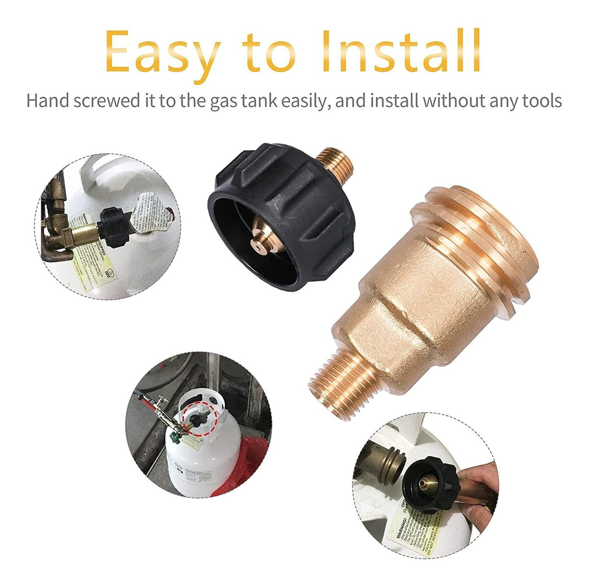 Amplia aplicación: el accesorio de gas propano QCC1 Acme Nut con rosca macho de 1/4 pulgadas es adecuado para propano o sistema de gas natural RV remolque de viaje, barbacoa, estufas de camping, calentador de propano y otros aparatos de propano.; Roscas estándar: adaptador de conexión rápida de propano RV tipo QCC1 rosca macho, rosca interior POL hembra, el otro extremo es de rosca macho de 1/4 pulgadas, válvula reguladora de gas propano con tuerca ACME x 1/4 pulgadas macho NPT, roscas estándar para no llenar demasiado un cilindro desechable, para casi todos los tanques de propano recargables.; Fácil de instalar: conector a tubo de gas qc1 adaptador macho de rosca de 1/4 adaptador de propano con buena forma y una válvula de retención para detener el flujo cuando no está conectado, se puede atornillar a mano al tanque de gas fácilmente, e instalar sin necesidad de herramientas.; Buena calidad: el adaptador de manguera de gas propano macho QCC1 Acme Nut está hecho de latón de alta calidad, duradero y duradero. El adaptador de propano QCC1 con tapa de plástico de seguridad se despega si se daña el flujo de propano.; El paquete incluye: 1 pieza de 1/4 Acme Nut propano latón accesorios, y 1 pieza QCC1 adaptador de válvula de regulador de gas propano. Características: