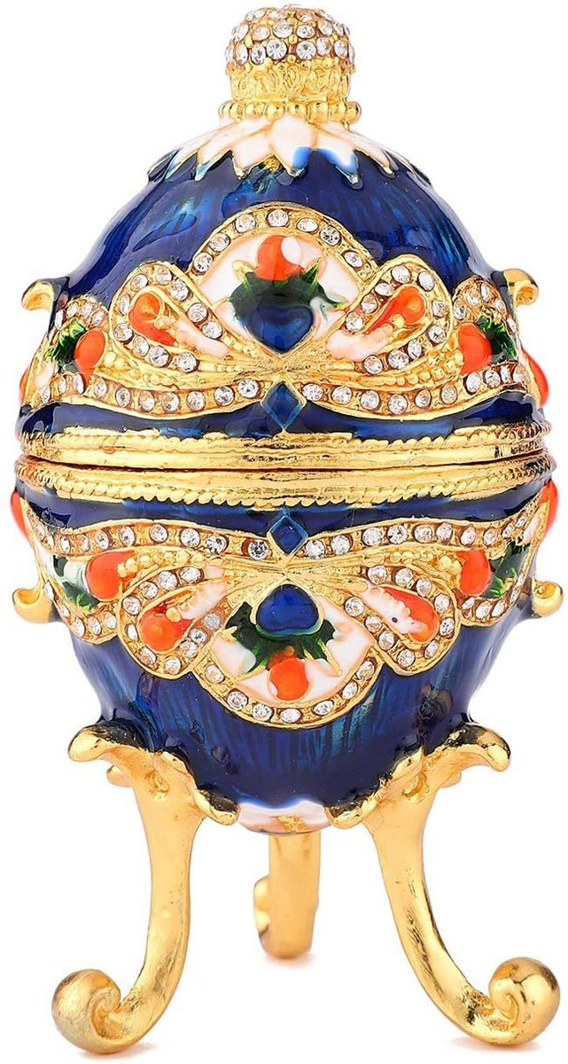 El huevo está hecho de un nuevo material de aleación de zinc por lo que el cuerpo de huevo es firme y pro-medio ambiente. Cubierta por el esmalte brillante y lisa, se puntea con muchos diamantes de imitación de alta calidad, lo que hace el exquisito huevo y color rico. Por lo tanto, es muy adecuado como un regalo o una colección a los familiares y amigos.