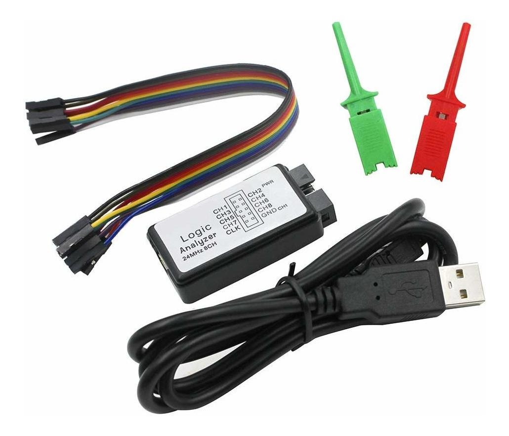 PAQUETE INCLUYE: Dispositivo 1 x Cable x Dupont Línea de prueba de 12 x 6 color 1 x Analizador USB 10 engancha .Las 12pcs SMD IC 6 colores de prueba Clips de gancho que son ideales para el uso de este analizador lógico 8CH 24MHz ..; Muestreo Tasa de hasta 24 MHz, 24 MHz puede ser. 16 MHz, 12 MHz, 8 MHz, de 4 MHz, 2 MHz, 1 MHz, 500KHz, 250KHz, 200KHz, 100KHz, 50KHz, 25KHz ;; Alta compatibilidad: Entrega del analizador lógico 24MHz 8CH es totalmente compatible con los programas de software de análisis de lógica y de código abierto como Sigrok (análisis de protocolo de RS232, SPI, I2C, 1-Wire, etc.) Este producto también es apoyado por el. software libre por Sigrok llama PulseView .; AUTOMÁTICAMENTE: UART, SPI, IIC y otra depuración de comunicación, le permiten obtener dos veces el resultado con la mitad del esfuerzo. velocidad de muestreo 24M, puede analizar automáticamente UART, IIC, SPI y muchos otros protocolos estándar. – La lógica para cada frecuencia de muestreo del canal de 24M / s. Las aplicaciones generales alrededor de 10M, lo suficiente como para hacer frente a una variedad ofoccasions; 8 canales.