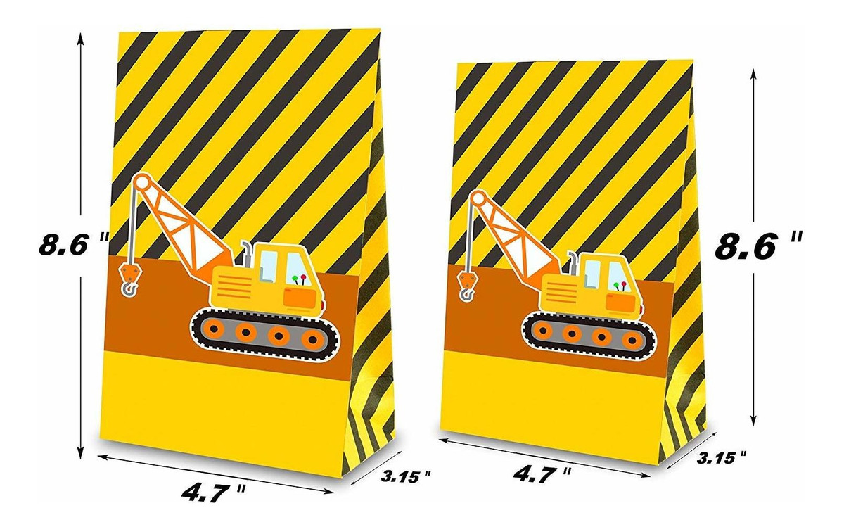 2, el camión de la construcción bolsas de regalo tienen 4 diseños diferentes. 4 Camión lindo y divertido de la construcción: excavadora, camión volquete, grúa y camión de la basura.
