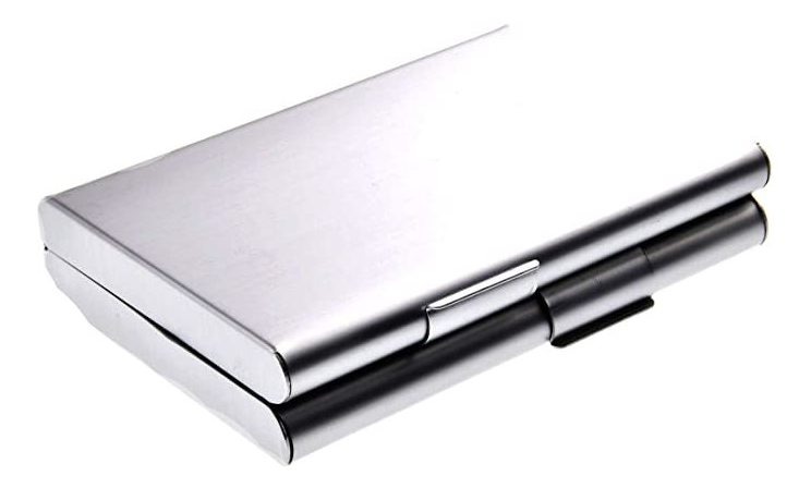 De Aleación de aluminio .; Capacidad para Hasta 16 Cigarrillos. El Número Máximo de Cigarrillos PUEDE Variar Ligeramente DEBIDO A Las Diferencias Entre las Marcas de Cigarrillos. Solo para Cigarrillos de Tamaño King (3,346 pulgadas), No Tiene Capacidad para 100 Cigarrillos. Para cajas de Cigarrillos Que se ajustan a 100 s, busca la palabra clave de 3.937 en .; Protege tus Cigarrillos de Que se arrugen .; Dimensiones: 3,5 x 2,6 x 0,8 en .; Color: plateado. Haz Que tus descansos para fumar se Vean bien. La Solución elegante y Práctica para Evitar los Cigarrillos aplastados y Las imagenes de ADVERTENCIA y choque. Todos nuestros productos estan en inglés SKU 8112012260