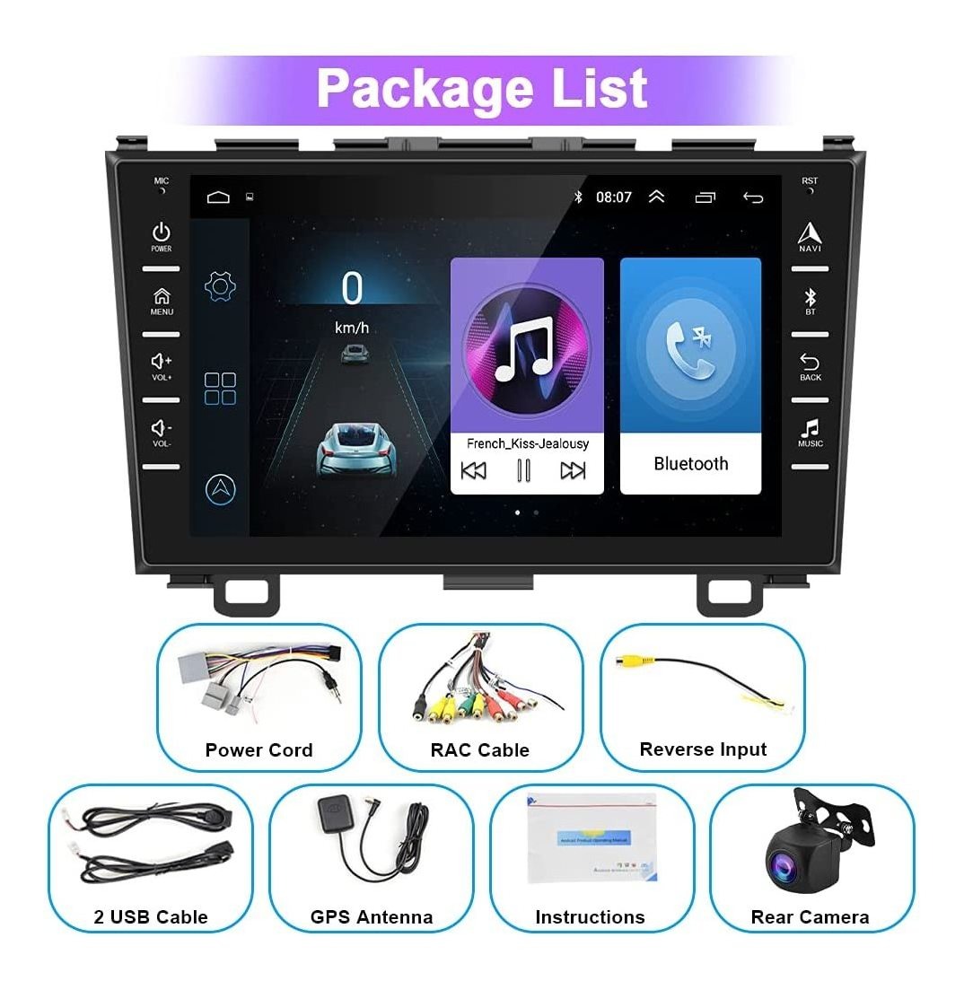 Estéreo de Coche Android para Honda CRV. Esta radio de coche está diseñada para el modelo, Honda CRV 2007-2011. Pantalla Táctil HD de 8 pulgadas. 2.5D Vidrio Templado Pantalla de Espejo, Resistente A Arañas, Huellas Dactilares, Alta Temperatura, etc. Con Doble Entrada de Adaptador USB, Salida RCA / Puerto de Entrada.; Receptor de Medios Digitales: Bluetooth para transmisión de audio Inalámbrica, Reproducción de Música Inalámbrica Y Llamadas Con Manos Libres. Con 18 Emisoras preestablecidas, El receptor de Radio FM de Alta Calidad Permiso Escuchar La Radio En Tiempo Real, Noticias, Pronóstico del Tiempo Para Que Tu Conducción Ya No Sea Aburrida.; Navegación GPS Y Conexión WiFi: Mapa Sin Conexión Integrado de América del Norte. Mapa en Línea, COMO Google Maps, Waze También ES Compatible, Después de Conectarse A WiFi, Puades Utilizar La Navegación GPS en Cualquier Lugar. ESTA UNIDAD PERMITE INSTALAR O ELIMINAR APLICACIONES ANDROID DESDE APP STORE, COMO EL TELÉFONO INTELIGENTE.; Enlade de Espejo y Entrada de Cámara de Copia: compatible con Android / iOS MirrorLink (para Android 8.0 e inferior, para iPhone 7s y más Abajo) Pueldos Ver El Vídeo en El Estéreo Despuentes de la Conexión. Despuyos de Conéctar A La Cámara, Cuando Tires de la Marcha Atrás, El Dispositivo Mostrará La Imagen de Visión Trasera Automáticamente.; Cámara de Seguridad HD Resistencia al Agua: La Radio de Coche Android Está Equipada Con UNA CÁMARA DE LA MARCA ATRÁS HD PARA UNA Gran VISTO NOCTURNA. La Cámara de Respaldo impermeable IP68 VIENE CON CABLE DE VÍDEO DE 19.7 FT Y Cable de Alimentación de 4.9 FT. Fácil de Instalar, Proporcionamos Un diagrama de Cableado Detallado. SEATATA A LOS VEHÍCILOS: