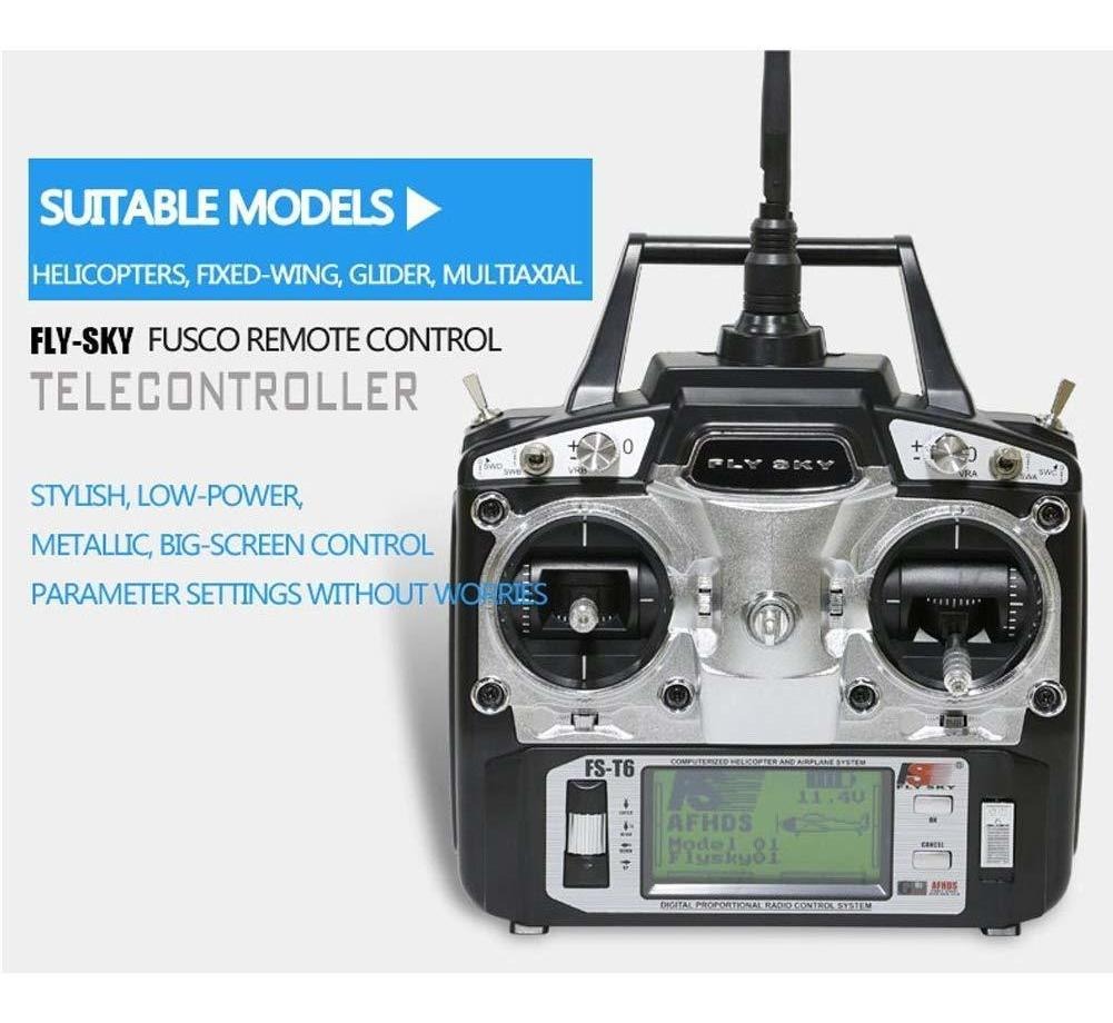 RCmall Flysky FS-T6 de Control de Radio 2.4G Transmisor + Receptor de 6 canales para Drone de carreras de helicópteros RC
