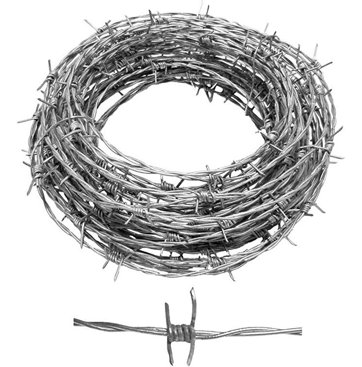 50 pies de alta resistencia a la tracción, de calibre 18, 4 punto de púas de alambre, con 5 pulgadas de separación entre las púas. HECHO EN AMERICA!; Esta es la clase 3 Galvanizado Alambre de espino, lo que significa que no se oxida fácilmente exterior. Es muy es fuerte !; Se puede utilizar para Agujeros Patch En una valla para evitar que los animales arrastrarse por debajo, o para envolver alrededor de un bate de béisbol. Este alambre de púas tiene muchos usos .; Desde este alambre de púas Es Calibre 18 (diámetro menor), es fácil de doblar para su aplicación .; Muchos clientes han reportado éxito en la disuasión de plagas, como las ardillas De Escalada Bird Alimentadores envolviendo el polo con este calibre 18 alambre de púas. Tamaño: 50 pies Calibre 18, 4 Point
